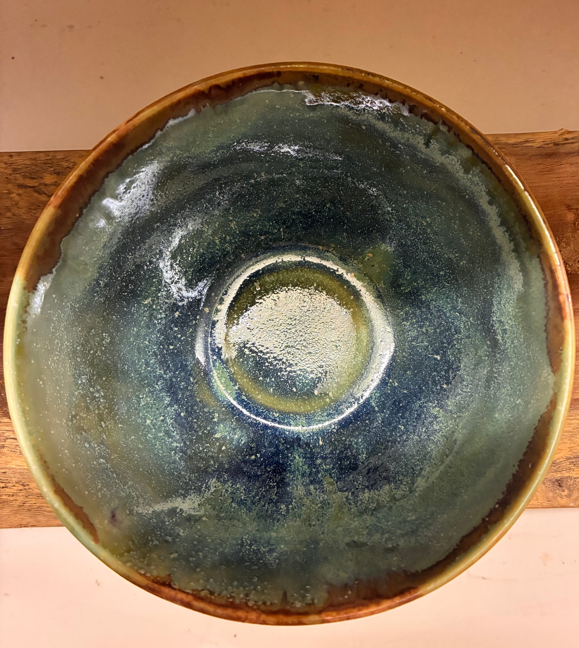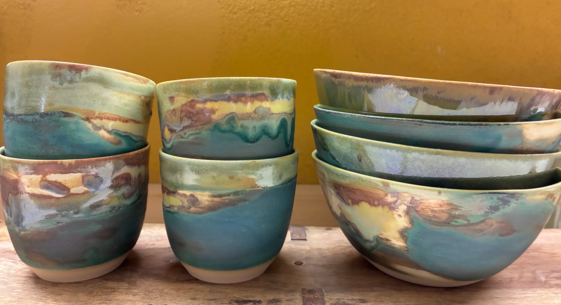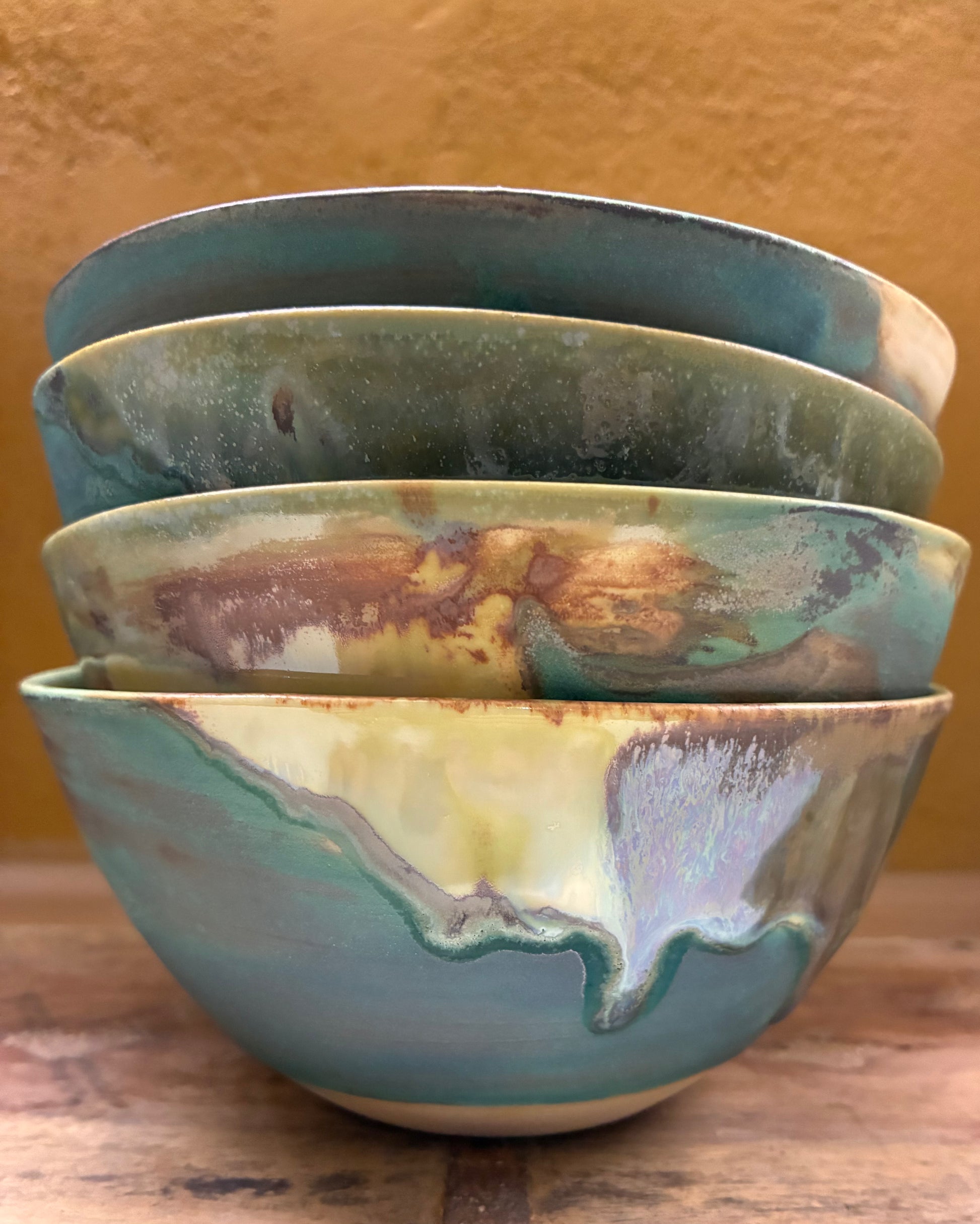 alle skåle er grønne inden i med turkis bølge og lys og grønne farver øverst