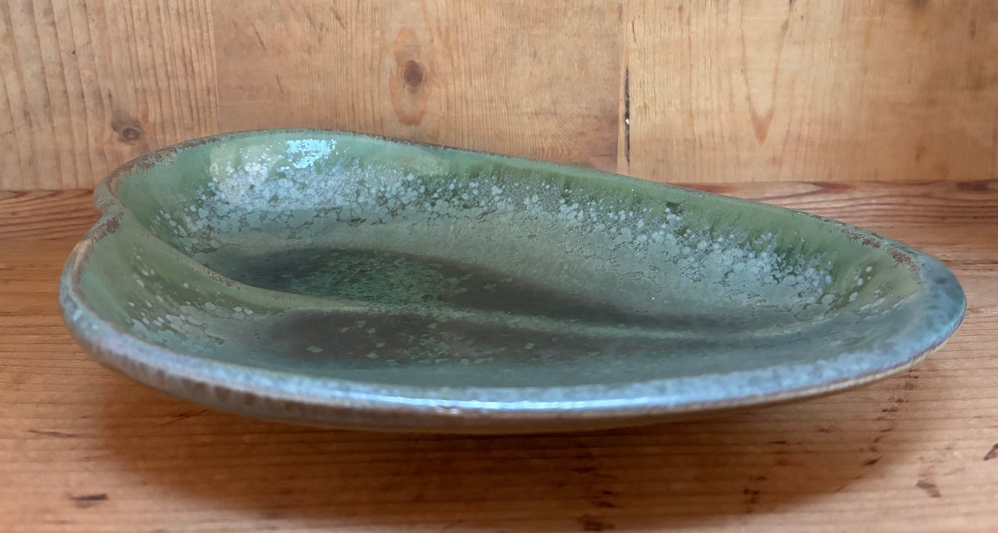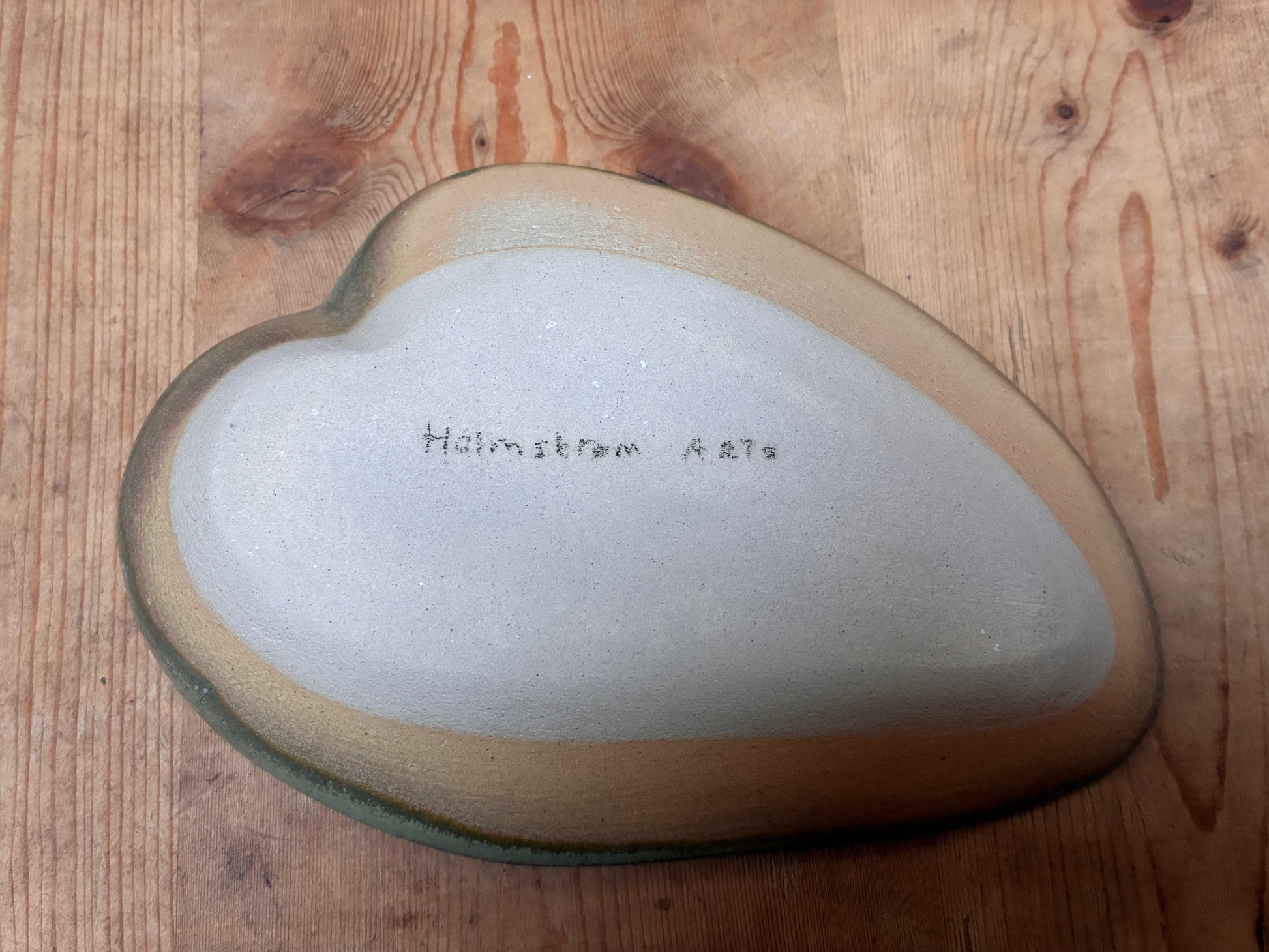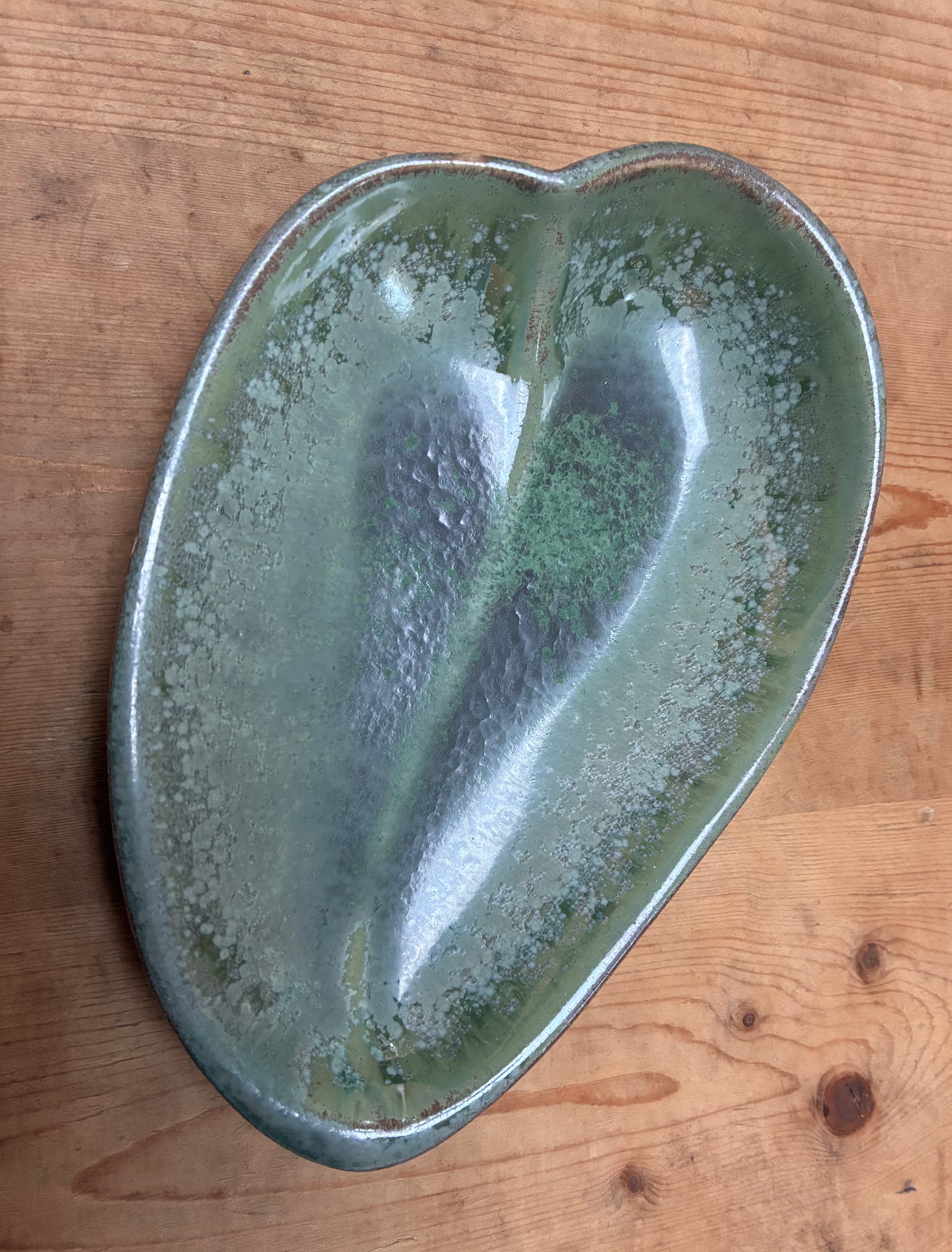 Denne unikke skål måler ca. 7 x 12 cm, med form som e åkandeblad eller et hjerteblad.